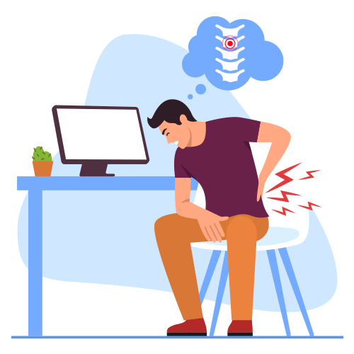 Many people will develop back pain due to prolonged sitting, which can contribute to a weakening of the core muscles that stabilize the spine — and puts undue strain on your lower back. Your pain will never fully resolve until you work to strengthen those muscles and address those postural issues.