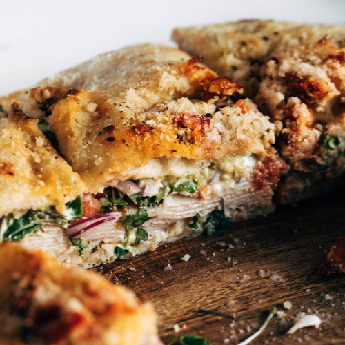 Layer the sandwich with pesto mayo, turkey, tomato, greens, red onion, and finish with dollops of pesto mayo. Dollop the top layer of pesto mayo directly on top of the greens and onions so you don’t have to flip the top piece upside down to spread it on the bread.